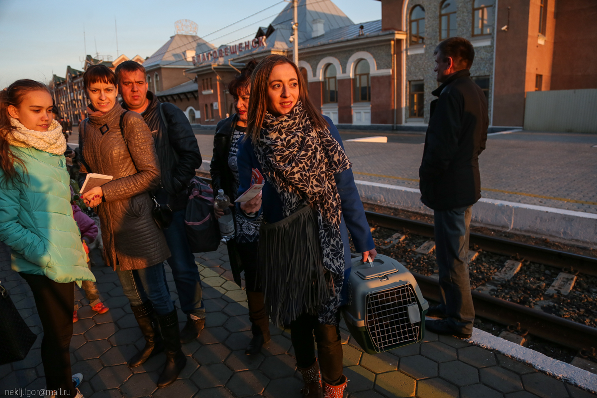 Медвежонок уже привык к жизни в квартире и своим новым хозяйкам — Ольге Щетининой и Нине Стельмаховой, которые заменили ему мать. Поэтому перед выездом на вокзал устроил настоящий концерт: не хотел сидеть в переноске, рычал и ревел. Так же он вел себя на вокзале, чем привлек внимание многочисленных уезжающих и провожающих. Но в купе успокоился и уснул. В Хабаровск питомца повезла Ольга Щетинина. Для питомца приготовили несколько контейнеров с кашей, но пока малыш спит, рассказали кураторы о первых часах путешествия своего подопечного.