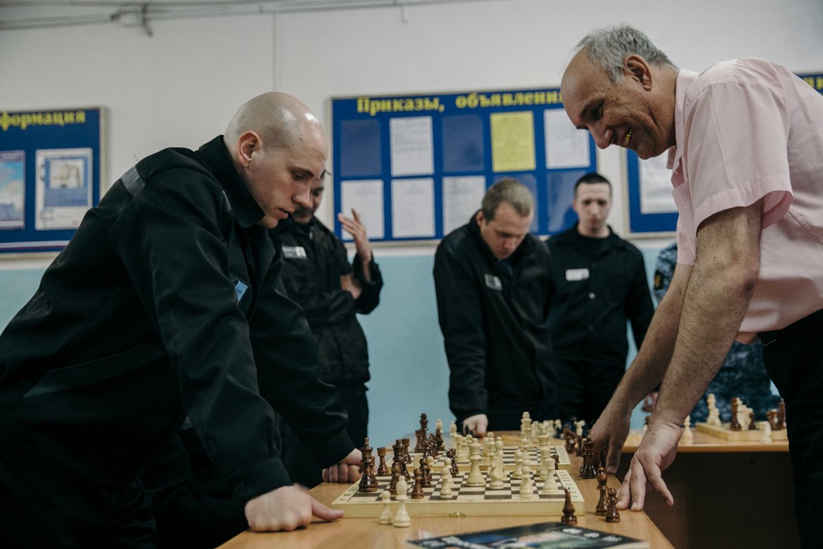 — Шахматы нравятся, со школы играл, а здесь времени много, и мы часто соревнуемся между собой, — поделился, не отрываясь от партии, осужденный Андрей. — Но со сторонним человеком, еще и с чемпионом, намного интересней, конечно.