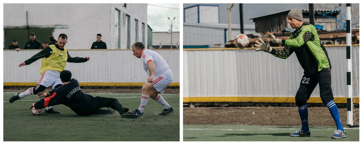 Люди в форме, особая пропускная система на входе — чувствуется, что мы попали на необычные спортивные соревнования. Игроки команды «Амур-Ветеран» не первый год участвуют в турнирах по ту сторону колючей проволоки — зимой играют в хоккей, а весной в мини-футбол. Также в составе спортивной делегации областного министерства спорта сюда приезжают теннисисты, шахматисты и армрестлеры.