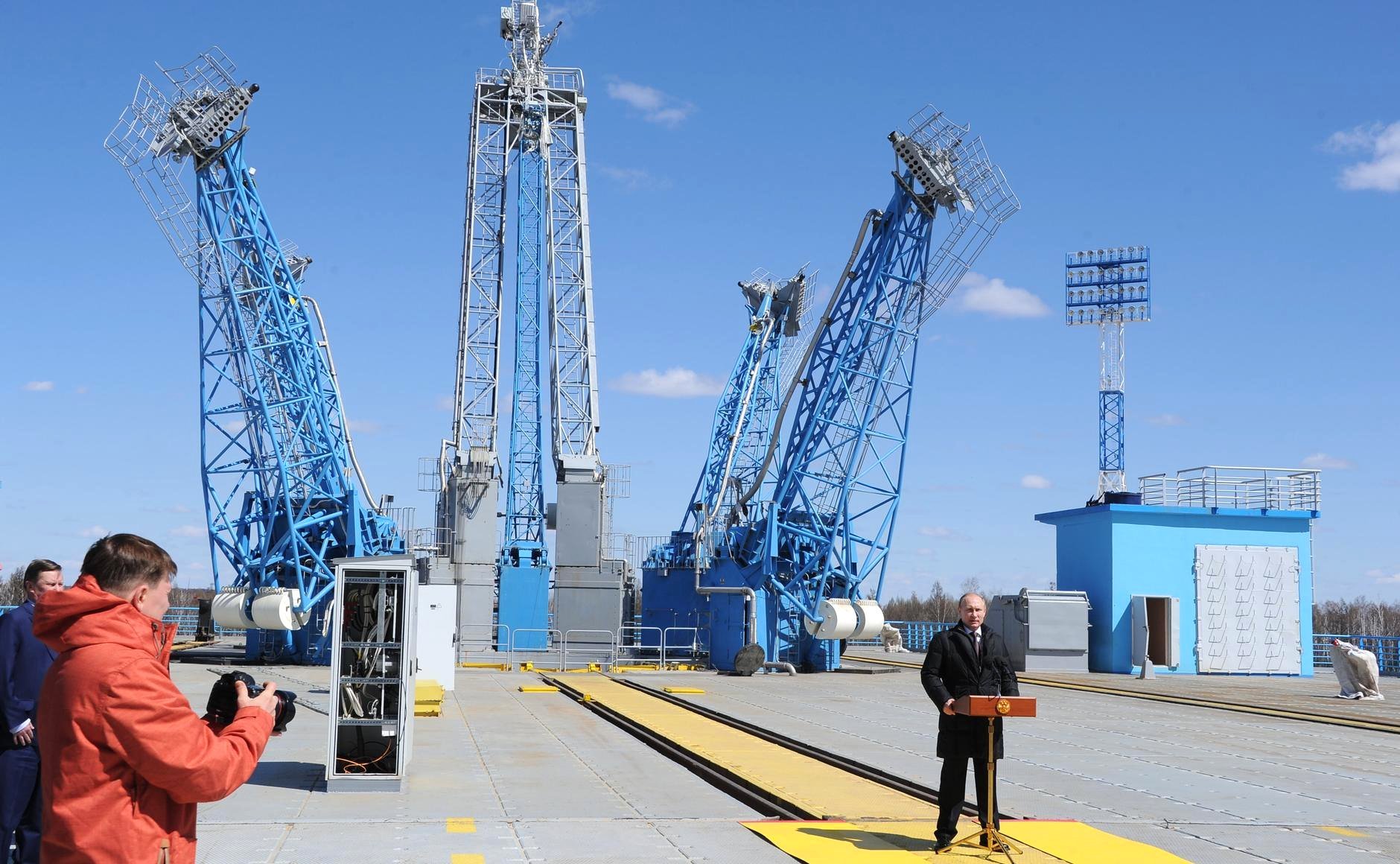– Как вы знаете, работа началась еще в 2007 году, когда был выпущен указ президента о том, что мы планируем создать такой комплекс. И он получился, – обратился глава государства к строителям. – Это первая очередь масштабной работы. Всё, что нужно было сделать с вашей стороны, сделано – и сделано на самом высоком уровне. Вы знаете, что вчера автоматика сработала таким образом, что даже немножко перестраховалась, приняла решение провести подготовку еще раз. Хуже от этого не стало – наоборот, сделано все качественно, на самом высоком уровне. И действительно, знаете, говорят: чтобы подтвердить качество пудинга, надо его съесть. Для того чтобы подтвердить готовность космодрома к работе, нужно осуществить первый пуск. И вы это сделали. Поздравляю вас! Впереди у строителей еще большая работа. Первый этап закончен, но это только первый этап. Далее планируется, и вы знаете об этом, строительство новой инфраструктуры для тяжелого класса ракет. Мы уже думаем о том, чтобы здесь же, в этом же комплексе создать инфраструктуру и для сверхтяжелых ракет, для пилотируемых пусков. У меня нет сомнений, что мы вместе с вами все это сделаем. Начало работы положено. Удачи вам! Спасибо!