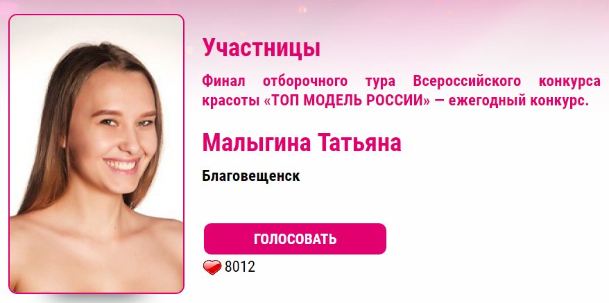 Изначально, по словам организатора Дениса Колодяжного, на конкурс было подано более 600 заявок. До финала дошли 30 красавиц. Причем большинство — жительницы Краснодарского края. Татьяна Малыгина — единственная представительница Дальнего Востока и Сибири. «Год назад Татьяна, окончив Амурский колледж строительства и жилищно-коммунального хозяйства, уехала из Благовещенска в Краснодар, где работает в модельном агентстве Premier models. Однако в конкурсе она решила представлять именно столицу Приамурья», — рассказали АП подруги участницы. Сама Таня сейчас усиленно готовится к финальному шоу — у девушек ежедневные съемки, фотосесиии, мастер-классы и участие в различных мероприятиях.