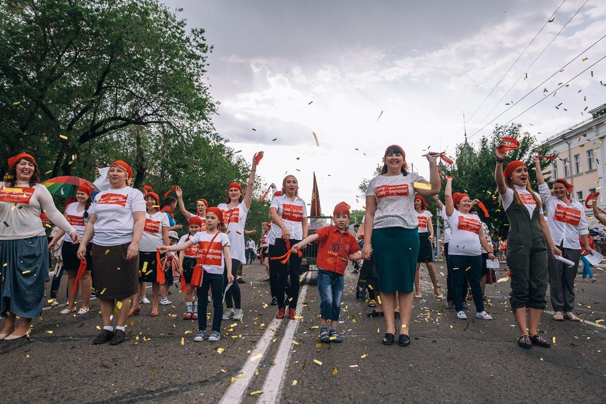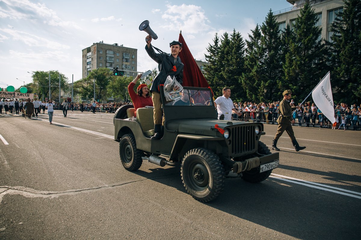 Во время праздничного шествия по городу прошли 123 колонны общей численностью около 7 тысяч человек. Среди них было 120 единиц техники и четыре лошади. Помощь в организации построения участников оказывали 140 волонтеров. Колонны прошли семь городских кварталов.