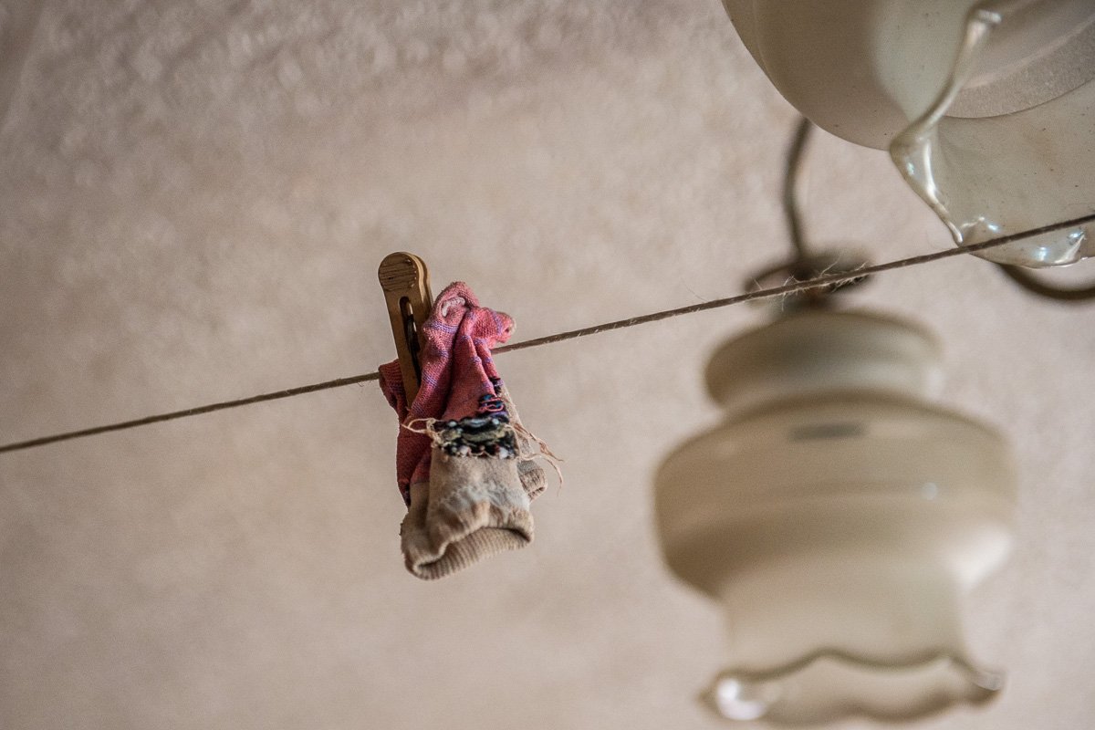 Заваленная каким‑то хламьем комната, посреди большая кровать, на которую страшно было присесть. Напротив детская кроватка, где спала младшая Ирочка. На протянутой через всю комнату веревке висят малюсенькие носочки, соединенные одной прищепкой. «Наверное, это носочки убитой малышки», — непроизвольно в голове рождались страшные картины, как все могло происходить.
