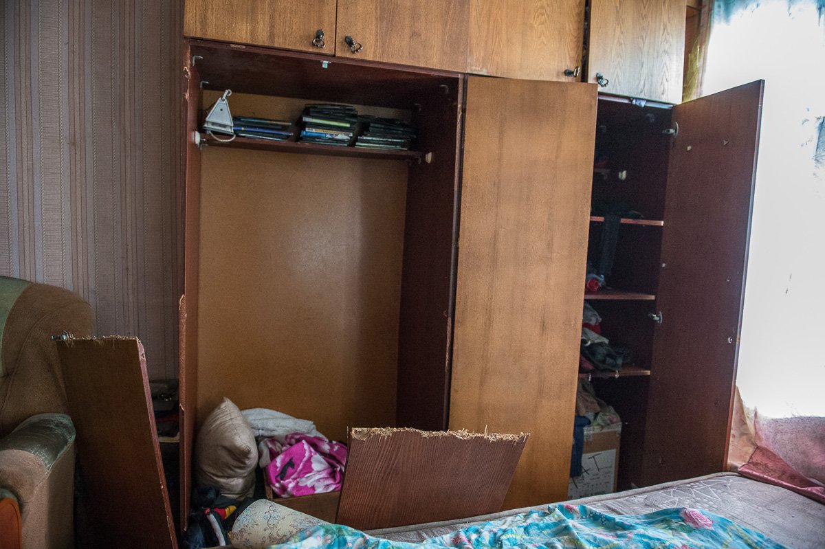— Виталя позавчера пришел злой, на мне две доски разбил, вот, видите? — хозяйка встала и, пошатываясь, показала на разломанную пополам дверь шкафа. — Но я не стала снимать побои. Это мой первый муж, до этого у меня мужа никогда не было. Уже семь лет живем. Он на 9 лет меня младше. Мы тогда поругались, а потом он стал выгонять меня из дома. Я взяла с собой старшую Нику — это не его дочь, хотела взять еще младшую, но он мне не дал. Ну я и пошла тогда к Кольке — соседу нашему через дорогу.