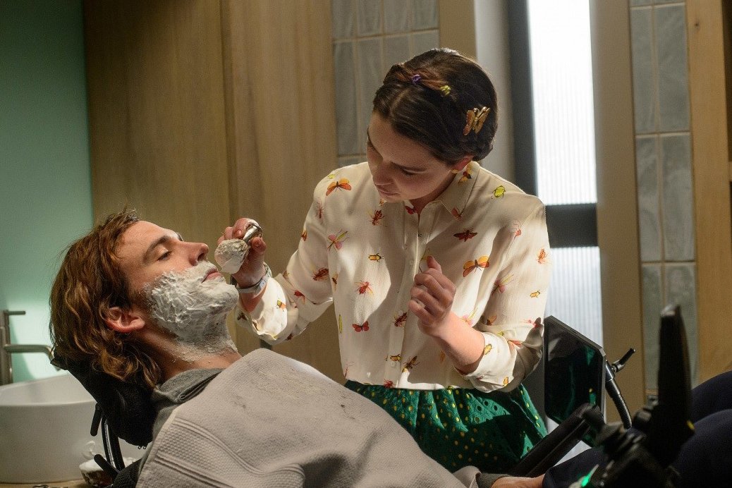 Претензий к «До встречи с тобой» может быть сколько угодно. Шэррок, конечно, работала над «Пустой короной» с Камбербэтчем и Хиддлстоном, но тиви есть тиви, а в этой мелодраме недостаток опыта компенсировать нечем. Она, конечно, пытается — в основном при помощи методик, которые сама видела в кино. Все эти увитые плющами замки и парижские круасанчики, все эти уходы навсегда и возвращения навеки, все эти цитации и упоминания Брюса Уиллиса всуе раскиданы по полянке щедрой рукой. Хочешь не хочешь, а наткнешься. Сомнительный на самом деле драматизм приходится усиливать до невозможности: ах, этот мужчина, пришедший в гости — профессиональный составитель завещаний; ох, доченька, если ты не найдешь работу, мы все помрем с голодухи: ух, останьтесь этой ночью у меня. «Я так старалась», — плачет в плечо батюшке героиня Кларк по фамилии Кларк. Но мы все равно не можем разделить ее уверенность в том, что работа, связанная с полетами на морские курорты и походами на скачки, непосильно сложна. Режиссер без конца стучит в один и тот же набат: человек, запертый в неподвижном теле, гибнет и чахнет на глазах, но мы-то, видевшие паралимпийцев и не только, понимаем, где сила, где слабость, а где вообще не стоило городить огород.