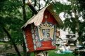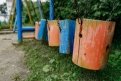 А вот через дом по той же улице — совсем другая картина. Старые спиленные деревья превратились в фигурки жирафа и Змея Горыныча, есть тут домик Бабы-яги, а из старых пластиковых бутылок выросла пальма. На деревьях развешаны скворечники.