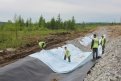 — Для защиты земполотна с обеих сторон насыпи предусмотрены водоотводные канавы, на дно которых сначала укладывается геомембрана, потом стелется тканый материал дорнит и затем засыпается скальным грунтом, — прокомментировал заместитель начальника механизированной колонны № 154 Евгений Милованов. — Такая конструкция не позволит воде размывать канаву и будет способствовать сохранению насыпи.