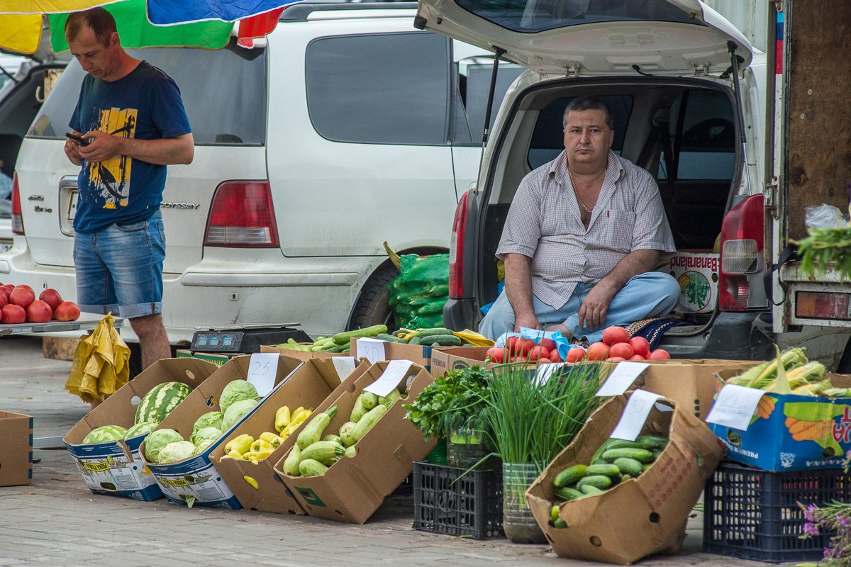 — Излишки решил продать. Овощи разобрали меньше чем за час. Картошка молодая — крупная по 60 рублей за кило, мелкая — по 30. Пучок редиски вообще за 20 рублей отдаю. Доволен, как торговля идет. Урожай в этом году хороший. Картошки много, помидоры пошли.