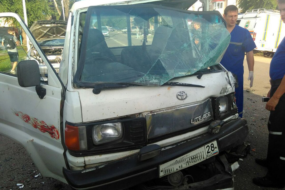 Микрогрузовик Toyota Lite Ace ехал по Амурской со стороны Мухина в сторону Загородной и остановился, чтобы пропустить движущийся по главной Артиллерийской компактвэн Toyota Nadia. Со стороны Загородной по Амурской на большой скорости ехала еще одна «тойота» — Ipsum. Ее водитель не пропустил «надю» и получил жесткий удар в правый бок. Ipsum отбросило на микрогрузовик, вследствие чего он опрокинулся на крышу.