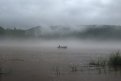 Он перевозит всех пассажиров в 3 рейса: по четыре человека за каждый. Мы садимся последними. Ветер, дождь, лодка тяжело идет навстречу сильному течению, разбивая перед собой волны.