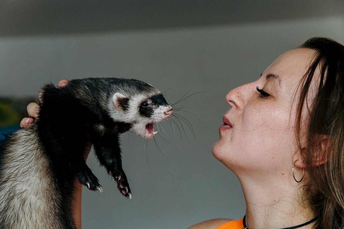 — Мой Тэдди приехал ко мне в качестве подарка на Международный женский праздник в прошлом году. Месячного хорька я купила у заводчицы в Талакане. Он даже глазки к тому времени еще не открыл! Поэтому мне пришлось стать ему мамой. Сначала он жил к крысиной клетке, потом купила апартаменты побольше — в них есть гамак, лежанка, пластмассовые трубы, лоток и кормушка. Сейчас ему полтора года и он игривый и забавный питомец. Теодор любит прятать пульт от телевизора с маленькими резиновыми кнопочками. Чтобы этого избежать, я ему купила ему детские пластмассовые шарики. Кладу их кладу в коробку, он по одному их вытаскивает, уносит за диван и прячет. Я снова достаю и складываю в коробку, но на следующий день все повторяется. Сейчас у него два или три места для тайников. Их убирать нельзя, иначе у животного будет психологическая травма.