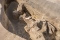 — Так мы его закрываем от солнца и ветра, — объяснили специалисты. — Мы сразу поняли, что это необычное захоронение. Если все могилы изначально можно было обнаружить по темным пятнам, то здесь было белое песчаное пятно. Почему? Мнения разнятся. Одни считают, что изначально засыпали чистым песком, который специально принесли. Другие, что тело просто положили в яму — и его занесло песком.