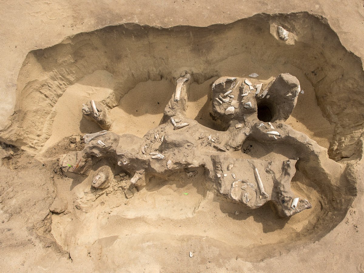 Загадочный скелет специалисты аккуратно разобрали, чтобы защитить от солнца и ветра. «Что стало с верхней половиной скелета, надеемся, помогут понять эксперты», — добавили археологи.