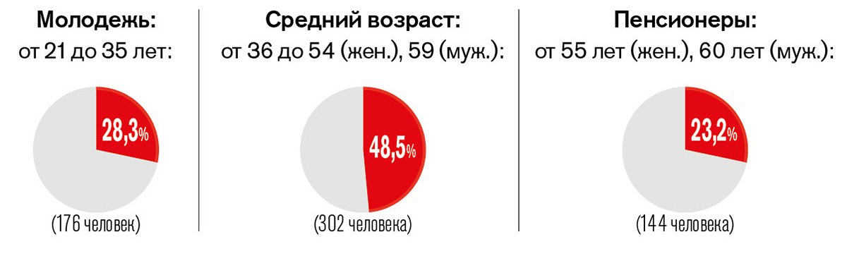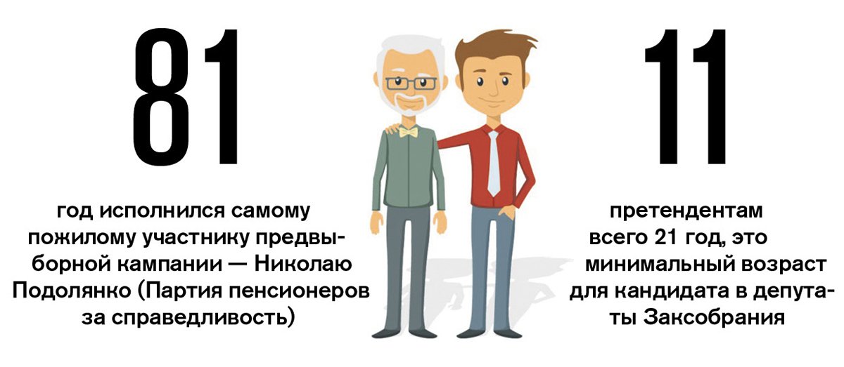 Самой молодой партией оказалась КПСС, больше чем половине ее кандидатов еще нет 35 лет. Самая возрастная — Партия пенсионеров за справедливость, здесь в основном действительно собрались пенсионеры.