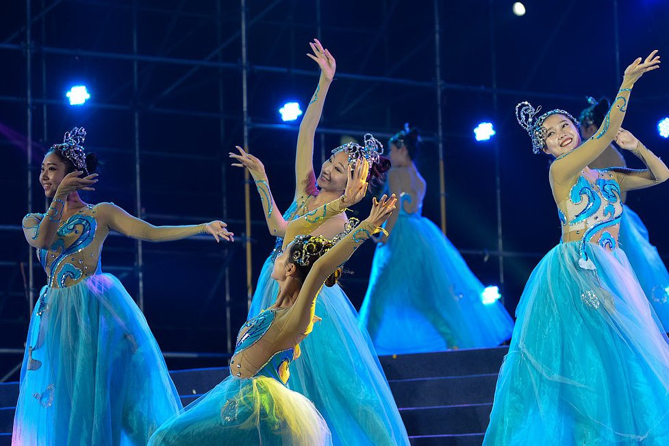 Торжественная церемония открытия VII фестиваля «Российско-китайская ярмарка культуры и искусств». Выступление театра оперы и балета КНР (площадь Ленина, Благовещенск.)