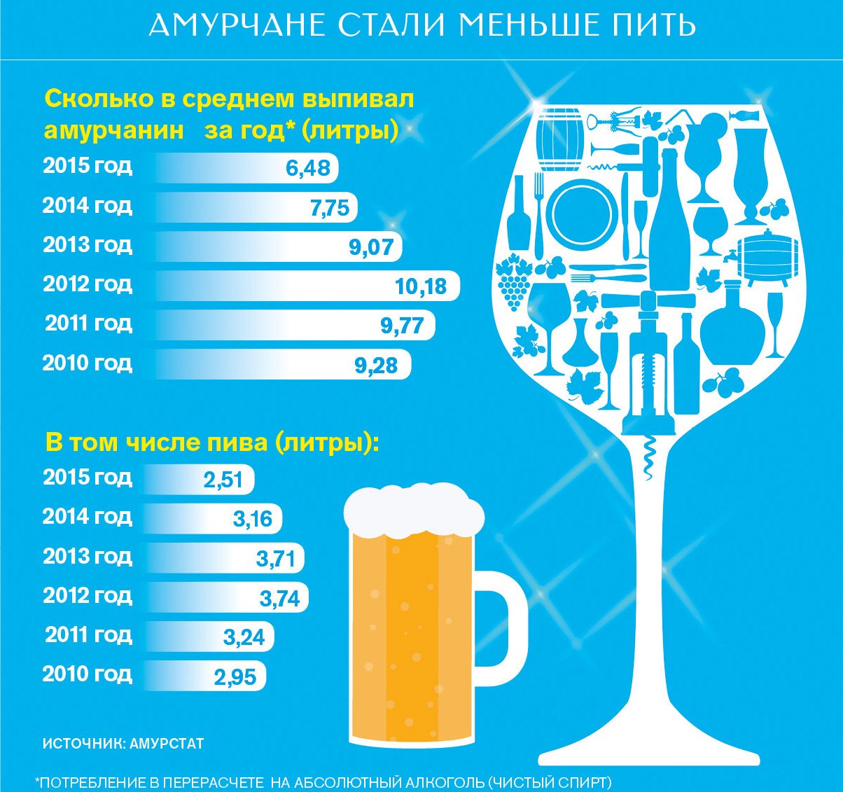 литра абсолютного алкоголя выпивает в среднем амурчанин за год