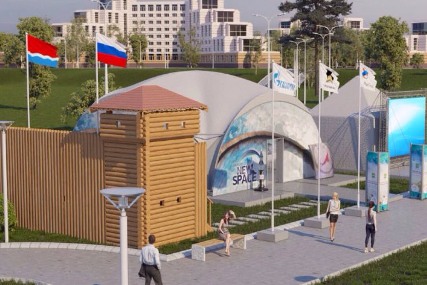 Основной выставочный павильон Амурской области будет контрастировать с экспозицией острога, перенося своего гостя в настоящее и будущее. Основа концепции — космос. Интерьеры стилизованы под лунную базу, создание которой станет возможно в обозримой перспективе благодаря программам освоения космического пространства на базе космодрома Восточный.