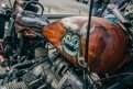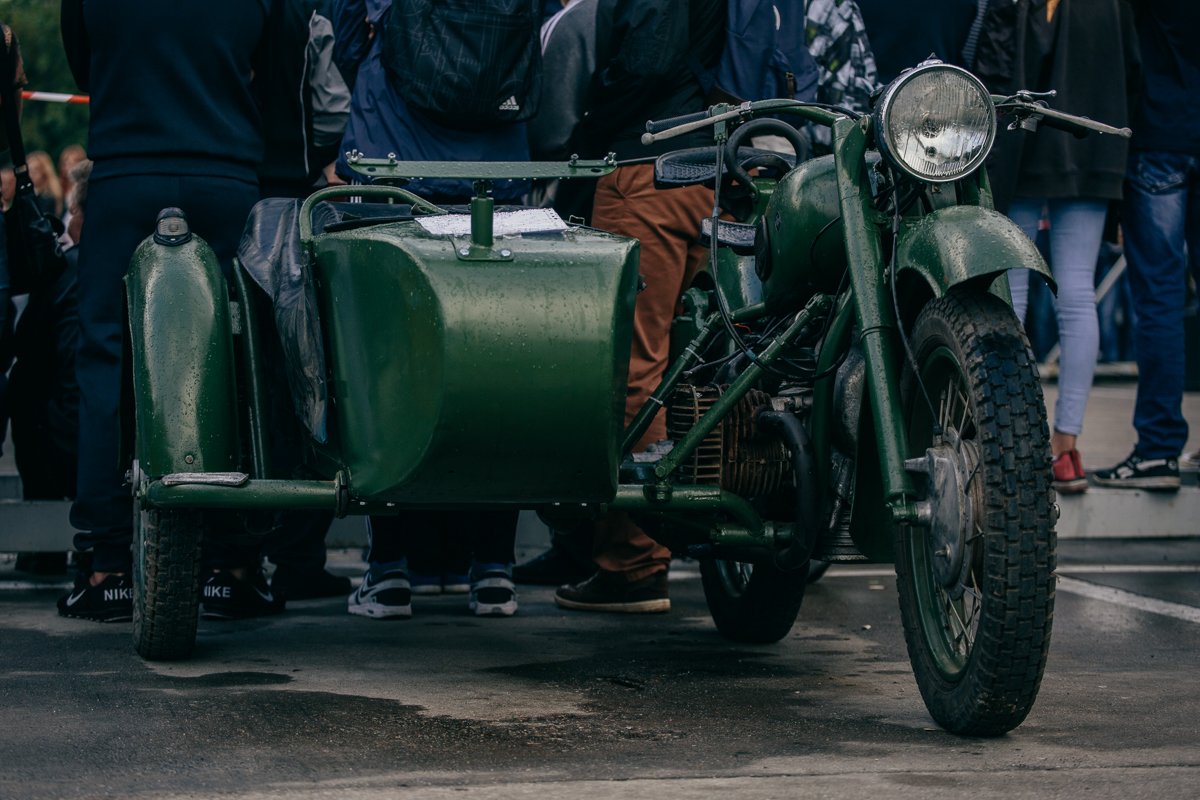 «Иж Юпитер-2К» 1969 года в модификации с боевым прицепом. Этот мотоцикл среднего класса предназначен для езды по дорогам любого качества. К байкерам он попал случайно в разобранном виде, а вот коляску к нему докупали отдельно. Все детали были заменены и покрашены. Кстати, при вскрытии сидений во время реставрации обнаружили улей пчел.