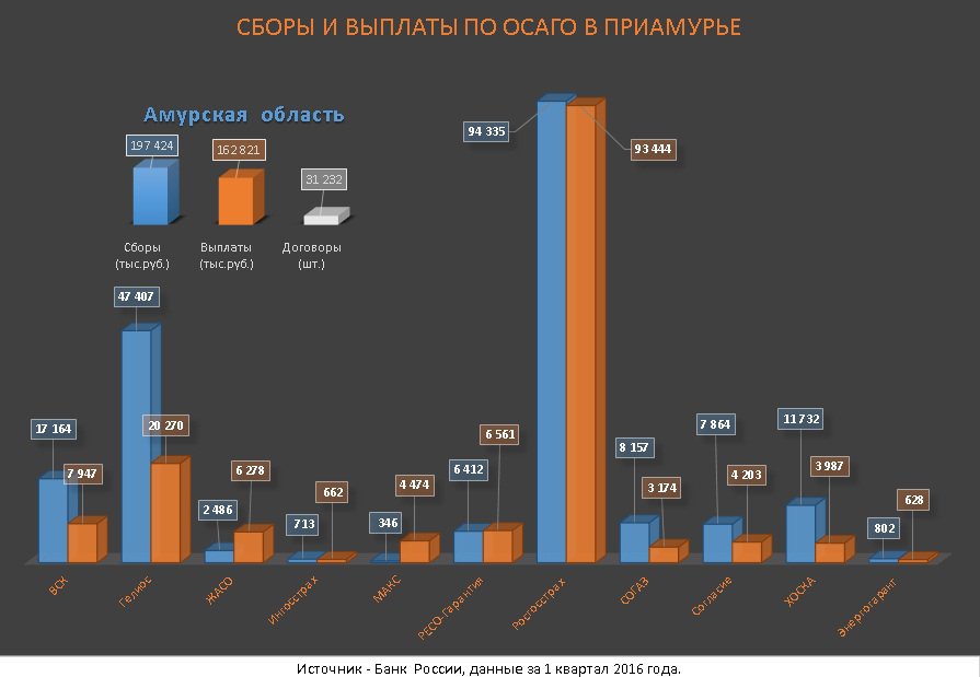 По данным Банка России, страховые компании, работающие в Приамурье, за первый квартал 2016 года заработали на продаже полисов ОСАГО свыше 197 миллионов рублей. При этом выплаты по ДТП за этот же период достигли почти 163 миллионов рублей. За первые три месяца текущего года в Амурской области страховщики оформили 31,2 тысячи полисов.
