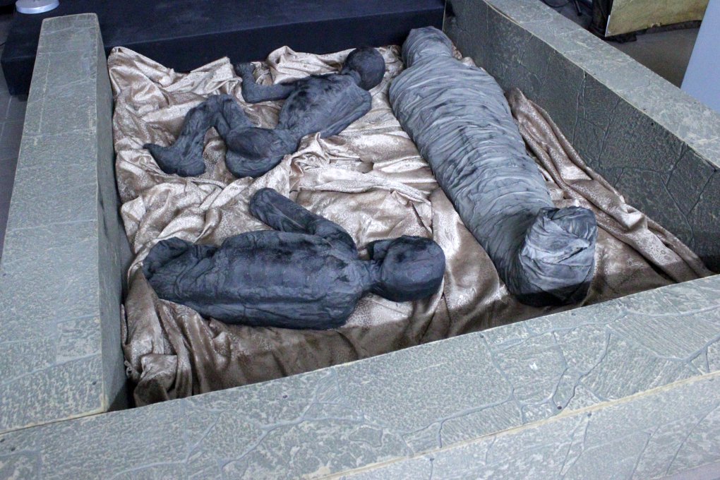 Копии египетских мумий — это ручная работа, выполненная в единственном экземпляре. Представленные аналоги дают отличную возможность увидеть усопших фараонов, стражей, охраняющих клады и украшения, Анубиса — бога-покровителя умерших, который изображался как человек с головой волка или шакала. Посетители также узнают, зачем и как египтяне мумифицировали тела усопших.