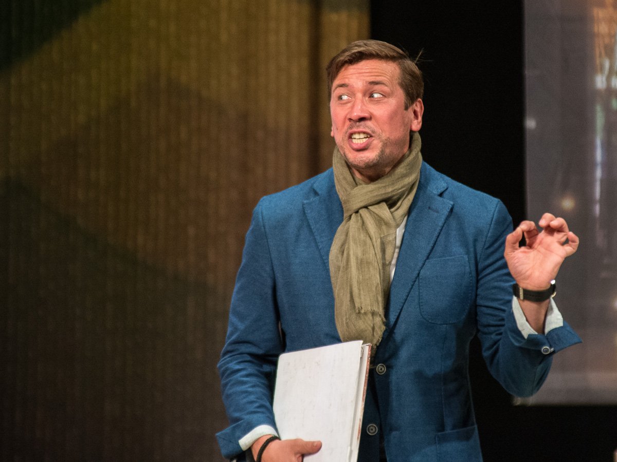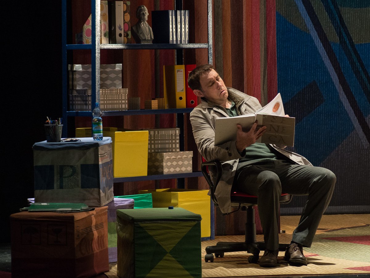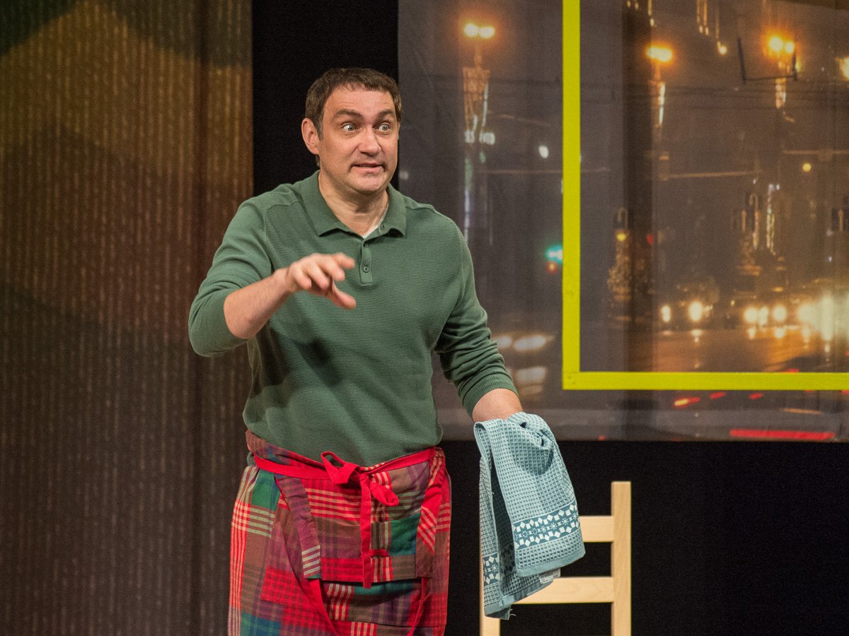 В этой роли Андрей Мерзликин предстает в несколько неожиданном для поклонников амплуа. Если на телеэкране мы привыкли видеть несдержанного бандита, мужественного спецназовца или уверенного в себе режиссера, то в спектакле перед нами — эксцентричный любитель всего модного и современного. Образ порой доведен до гротеска. Этому способствует сама игра актера, о которой можно сказать хрестоматийным «вы переигрываете».