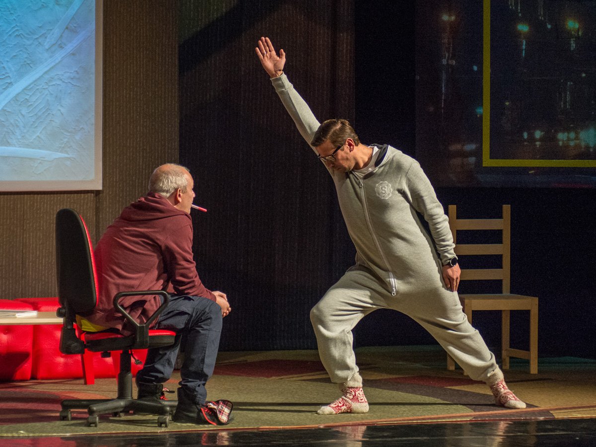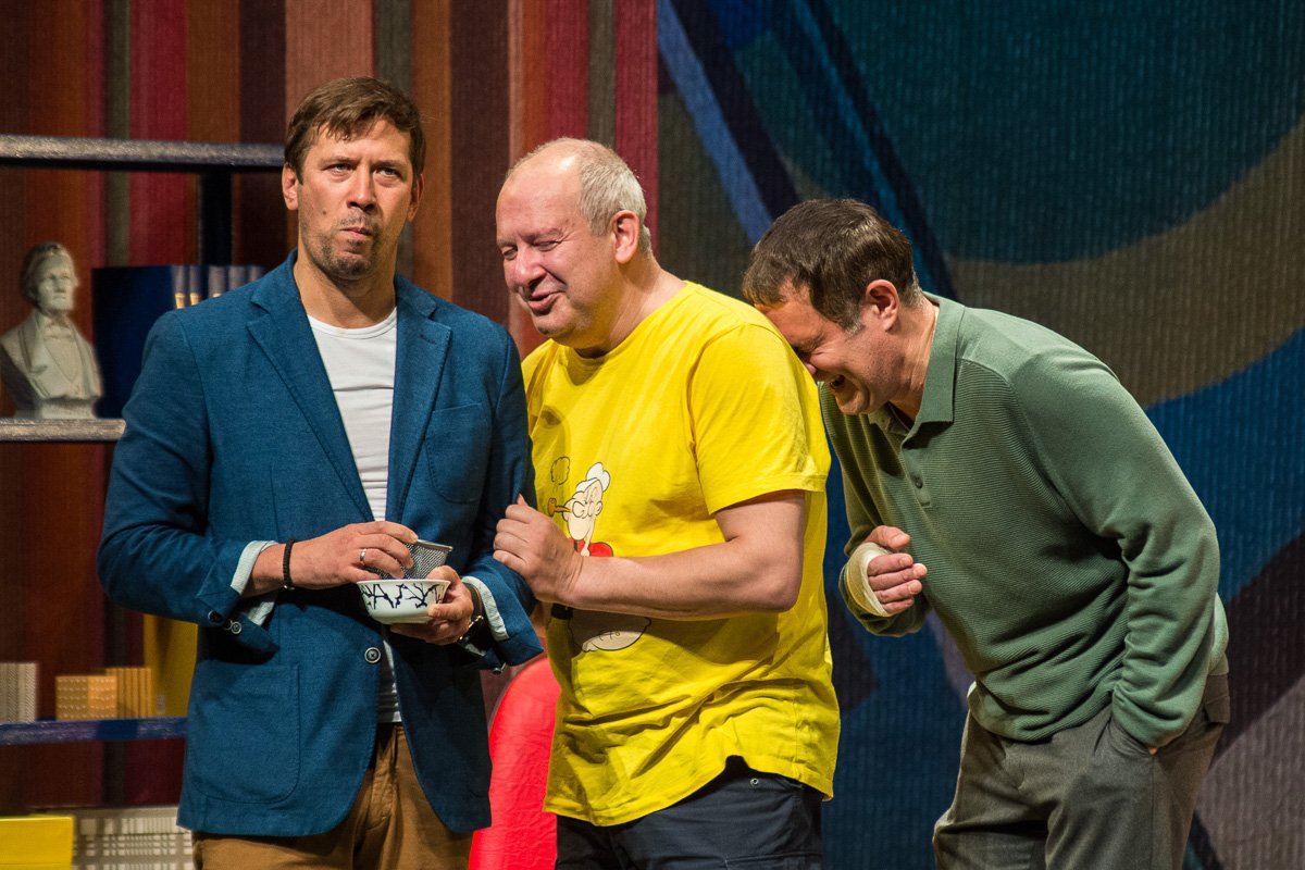 Спектакль намного серьезнее, чем мы пытаемся рассказать. В силу того, что сам жанр предполагает, что вы пришли в театр после работы уставшие, и чтобы мы не загружали зрителя. Но зритель сам умный и серьезный, он поймет, о чем эта история. Нам было важнее сыграть друзей. Друзья могут поругаться — вот корень спектакля, а проблема, конечно, мировая. Когда постмодернизм меняет традиции во всем, не только в живописи. Дело ведь не в живописи.