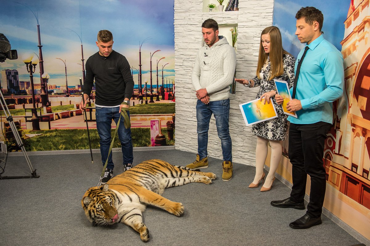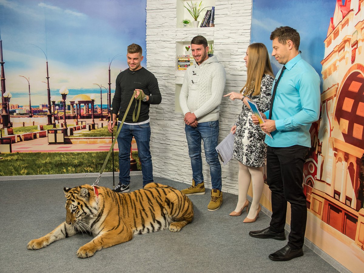 Тигр — второе животное, которое посещает студию «Нашего утра». Первым месяц назад стал неугомонный пес породы вельш-корги. Однако хвостато-усатые гости — все же редкость, чаще всего героями становятся интересные люди Благовещенска. Причем как известные, так и неизвестные.