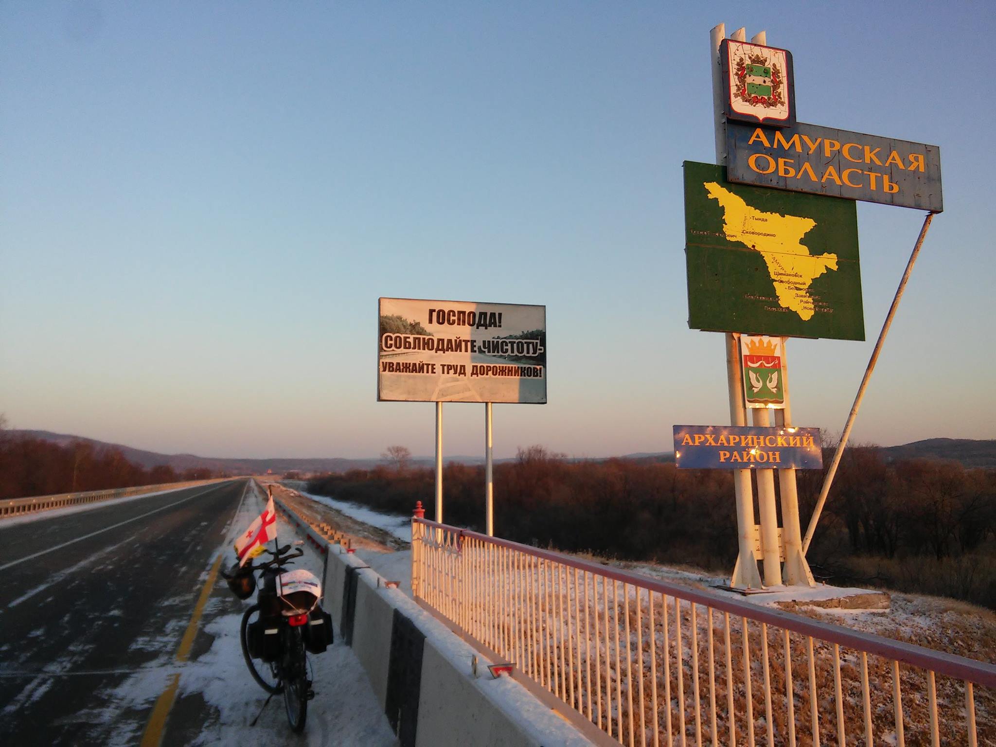 Приамурье стало достаточно сложным отрезком в путешествии Нодара. В Архаре его накрыл снег, а столбик термометра опустился до минус двадцати.