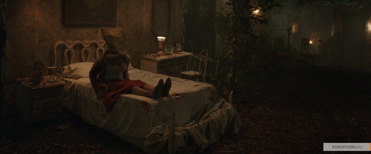 Насчёт «лабиринта страха» — это уже в российском прокате постарались, пользуясь тем, что одноимённый японский ужастик 2009 года до наших кинотеатров не добрался. В переводе с английского языка слово Abattoir означает "скотобойня": создатели фильма и предшествовавшей ему серии комиксов не лишены циничного взгляда на вещи. Ни одно животное в процессе не пострадало, зато человеческих жертв в этой истории не сосчитать — главный злодей с весьма претенциозным именем Джебедая Кроун коллекционирует места жестоких преступлений. В самом буквальном смысле — скупая за бесценок дома, в которых произошли жуткие убийства, и «вырезая» из них нужные помещения целиком. Сам он вполне ожидаемо является проповедником «особенного» религиозного учения, согласно которому попасть в райские кущи можно исключительно через глубины ада. Фанаты мультсериала "Симпсоны" хихикнут — основателя Спрингфилда, в котором главным образом разворачиваются его события, тоже звали Джебедая, и этот колоритный мужик в меховой шапке также был склонен к гребле против течения. Созданный Боусманом персонаж не так уж и оригинален, а актер Дэйтон Калли явно не очень комфортно чувствует себя в этом мещанско-демоническом образе.