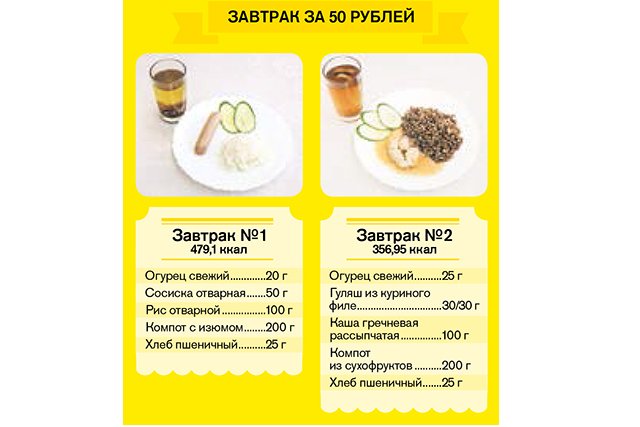 «Этот рацион с позиции калорийности, сбалансированности питания не имеет права на существование, потому что нарушает необходимый норматив. И все‑таки комбинат школьного питания представил данный вариант — исключительно для того, чтобы ребенок съел хотя бы это, а не ограничился булкой, — пояснила Ольга Курганова. — Но все же нужно понимать, что за 50 рублей приготовить нормально сбалансированное вкусное блюдо невозможно».