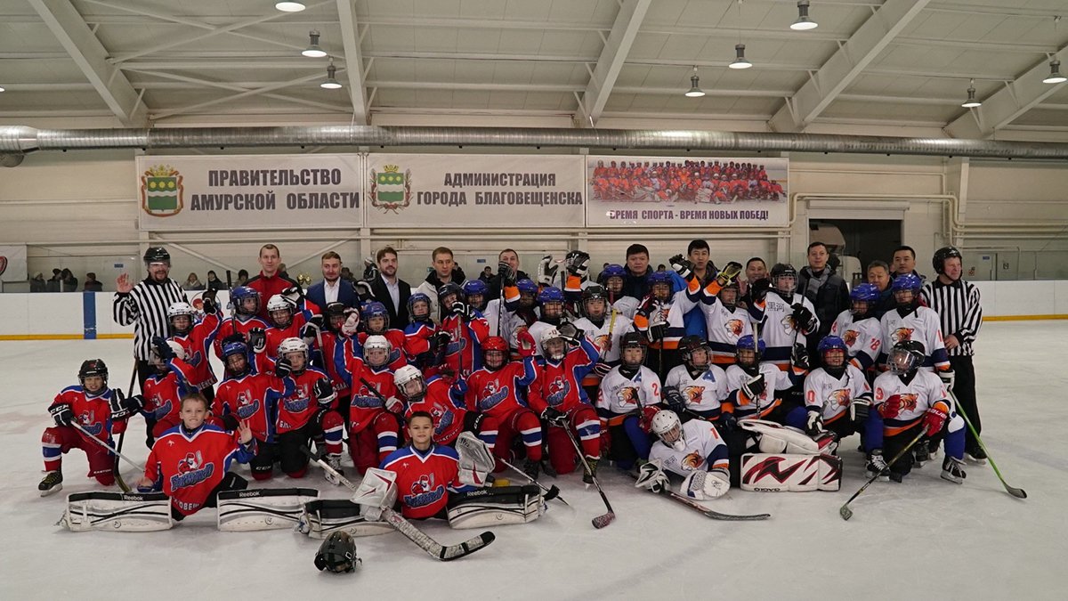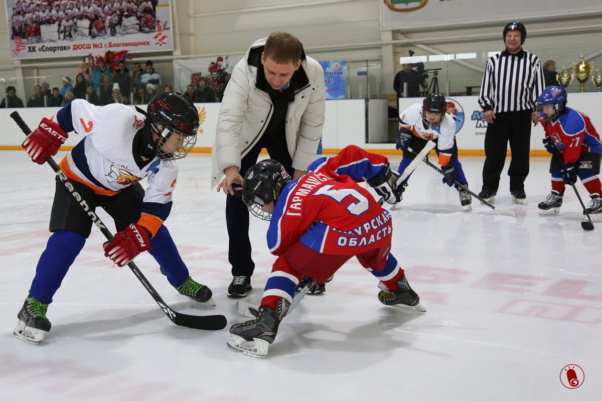 Губернатор принял участие в первом символическом вбрасывании шайбы. Затем начался турнир. На лед вышла благовещенская команда «Форвард». Их соперниками стали юные хоккеисты из КНР. В итоге сильнее оказались амурчане. Они смогли забросить в ворота гостей из Китая восемь шайб, а пропустили лишь две.
