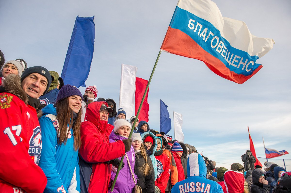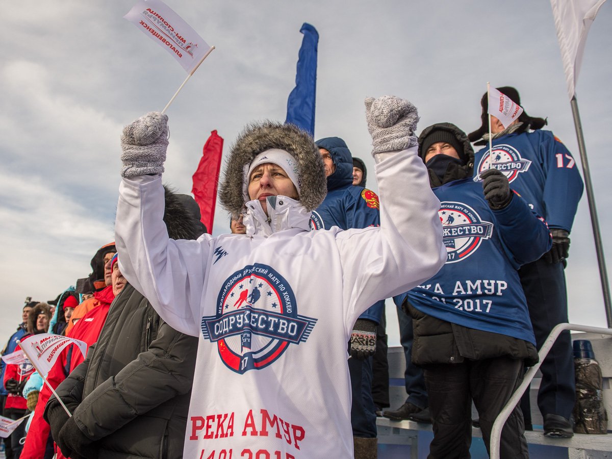 Не отпугнула ветреная погода и несколько сотен горожан и гостей Благовещенска, которые собрались посмотреть уникальный матч на набережной реки Амур. Для них был установлен большой экран, организована фотозона, работала полевая кухня. Более того, кадры матча в прямом эфире облетели не только Амурскую область, но и всю Россию и мир.