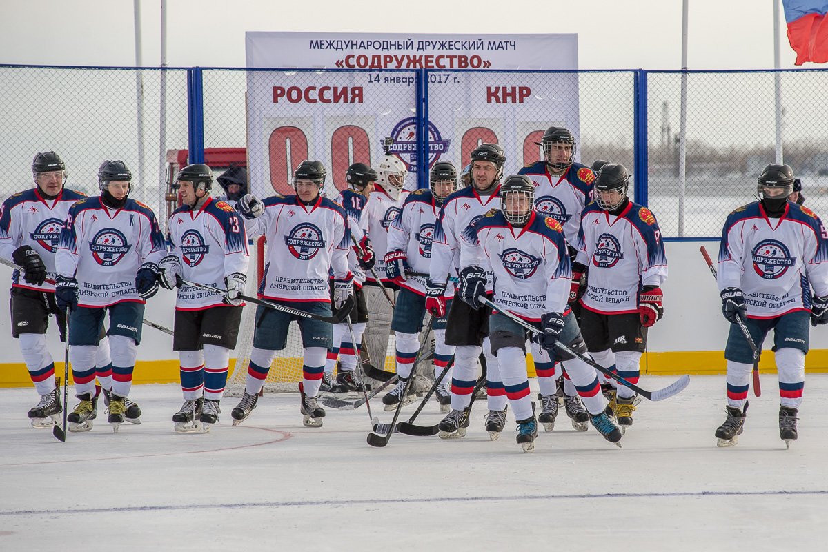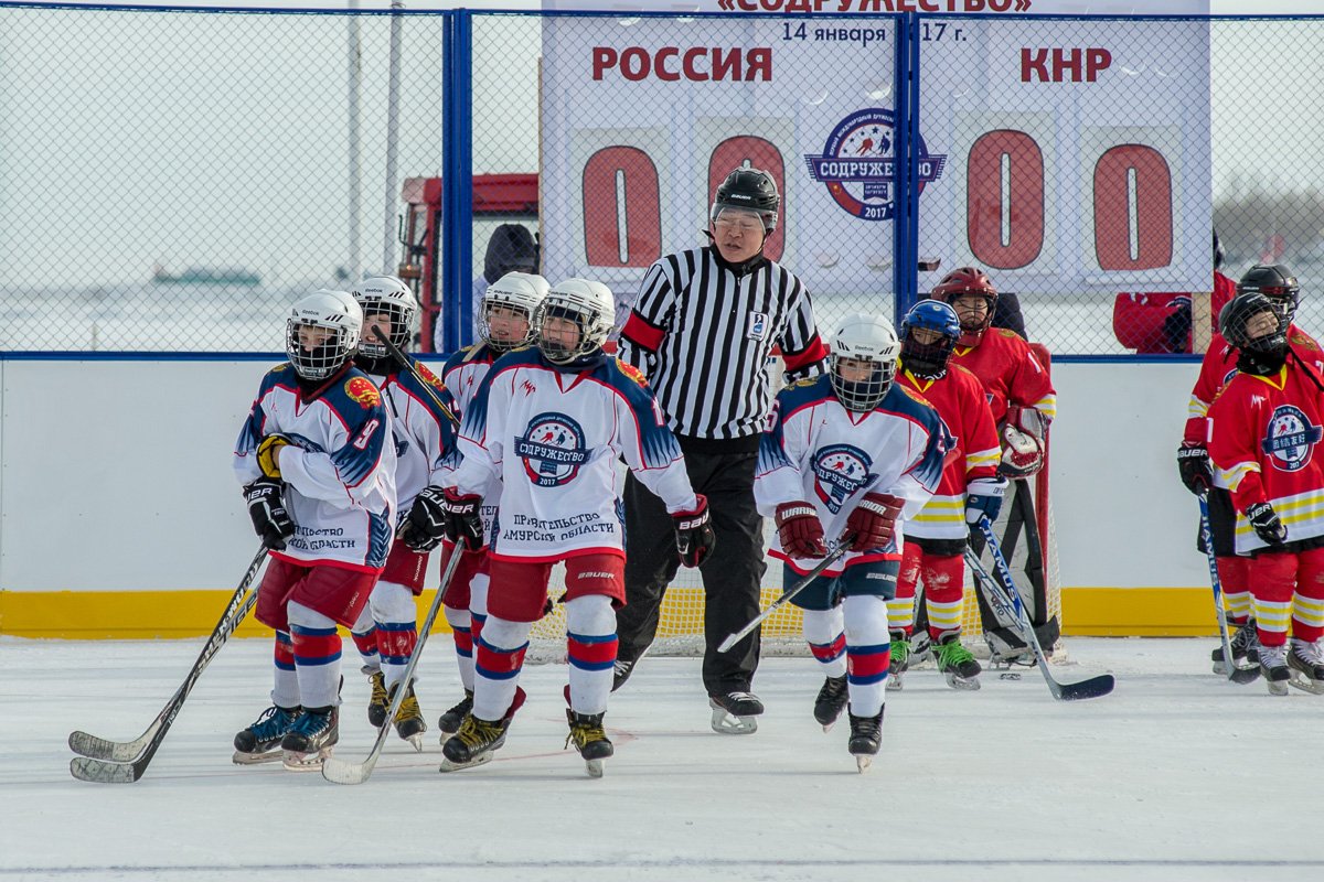 — Товарищеский хоккейный матч проводится для укрепления дружественных спортивных связей между Амурской областью и провинцией Хэйлунцзян и, конечно, для популяризации в наших странах такого прекрасного зимнего вида спорта, как хоккей, — отметил губернатор Александр Козлов. — Международный товарищеский хоккейный матч проводится в год празднования 70-летия российского хоккея. Пусть этот турнир, который символично организован прямо на границе, станет отличным началом хоккейного международного партнерства между Российской Федерацией и Китайской Народной Республикой!
