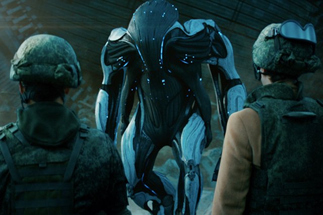 Персонажи перемещаются с тротуаров на крыши, проводят сложные медицинские процедуры, переносят тяжести и так далее — все это делается за кадром, ибо не суть. Постановщик активно пользуется голливудским опытом, будь то «День независимости» или «Район № 9», но тоже без особенного внутреннего ликования. Нам, конечно, покажут все эти «Центры национальной безопасности» иже с ними, где люди в хаки и белых халатах заняты тем, что встревоженно смотрят на экранчики, но, позволю себе небольшой спойлер, не состоится даже традиционная сцена, когда они все должны орать и обниматься. Впервые в истории человечества оно лицом к лицу столкнулось с разумными представителями других миров. Но интересует это, по большому счету, только жителей многократно осмеянного в интернете Чертаново. Бондарчук сначала с наслаждением изолирует страну от остального мира — мол, инопланетяне — наши, как и Крым, а потом показывает нам таких россиян, что особенно активным патриотам впору собирать подписи о лишении гражданства всех, кто причастен к появлению «Притяжения» на свет. О межпланетных контактах и речи быть не может: стадные инстинкты побеждают ежеминутно, власти совершенно не контролируют ситуацию, полицейские-садисты волокут всех подряд в кутузку, предварительно отходив резиновой палкой по чувствительным местам. Иногда — не слезая с коней.
