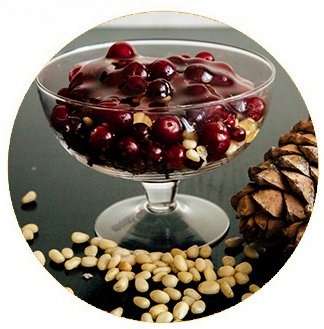 Мороженую ягоду — бруснику, калину или клюкву — посыпаем кедровыми орешками и сверху заливаем медом.