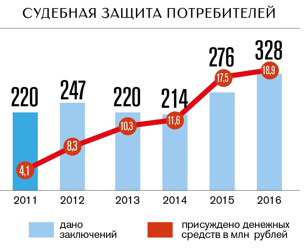 Если в целом по России показатель участия службы Роспотребнадзора в судах за прошлый год составил в среднем 113 заключений, то в нашем регионе он почти в три раза выше — 328. Мы рады, что у нас практика по судебной защите населения сложилась. Но, конечно, важна правовая грамотность потребителя.