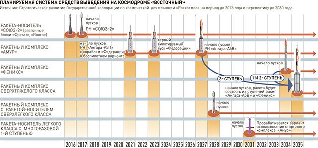 Глава Роскосмоса также отметил, что со следующего года на Восточном начнется строительство комплекса сооружений для ракеты-носителя «Ангара-А5». Эти работы включены в проект ФЦП «Развитие космодромов на период 2017—2025 годы в обеспечение космической деятельности РФ». После 2025 года в планах госкорпорации есть также создание на космодроме Приамурья комплекса для сверхтяжелой ракеты и его использование для реализации программы освоения дальнего космоса.