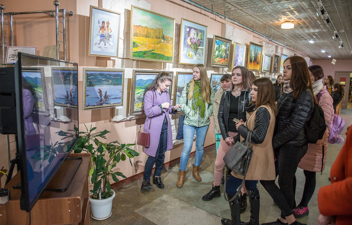 В рамках фестиваля в областной научной библиотеке открылась выставка картин преподавателей по рисунку и живописи АмГУ. Фото: Андрей Ильинский