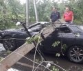 Одна из опор по улице Пионерской рухнула на черную иномарку — по иронии судьбы, хозяин приобрёл эту машину только сегодня.