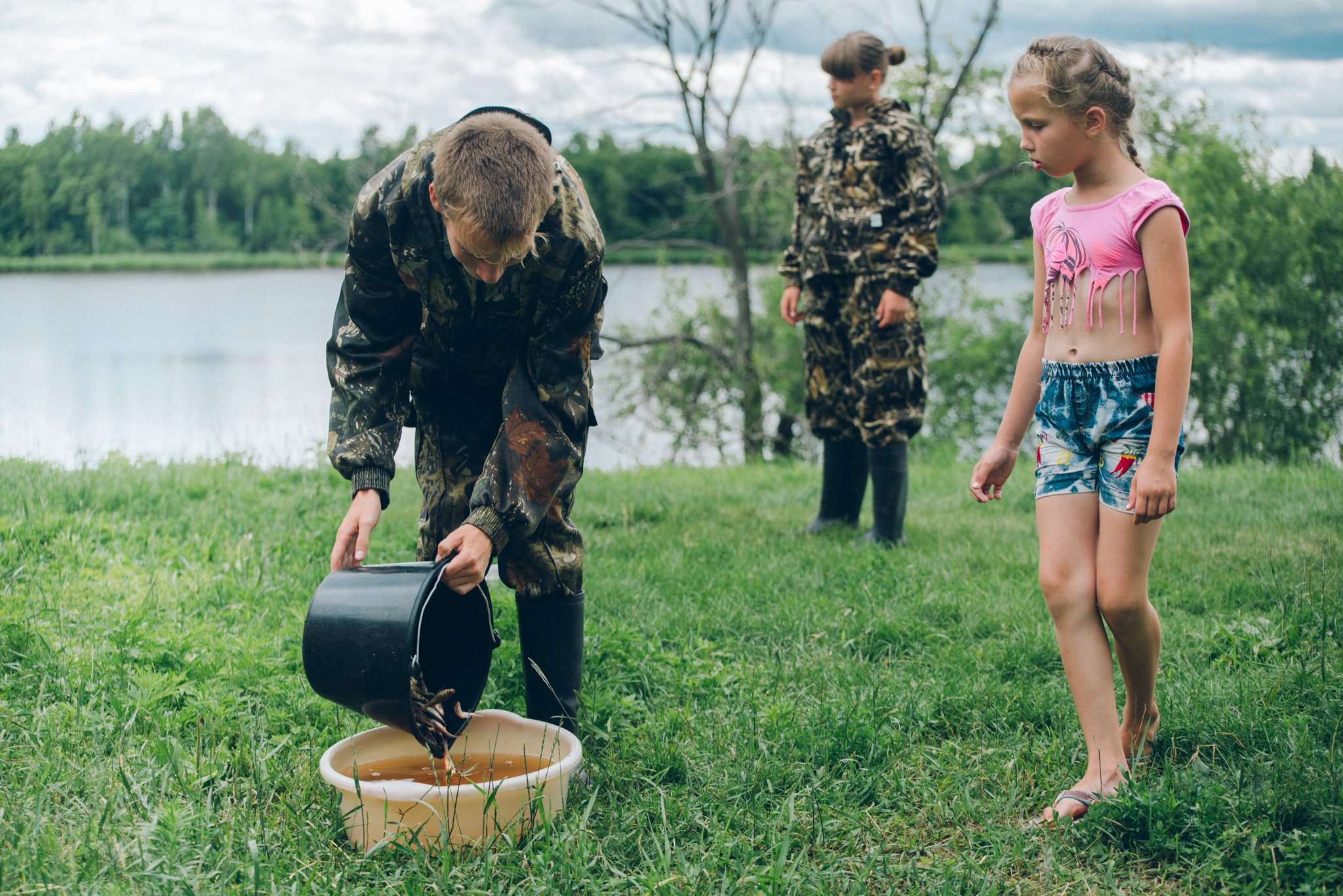 — Я бы здесь жил годами — красивая природа, воздух чистый. Мы встаем в 8 утра, пробегаем вокруг дома, зарядку делаем, плаваем, готовим себе — картошку жарим, уху вчера ели, — признается подросток, который собирается выучиться на повара и плотника.