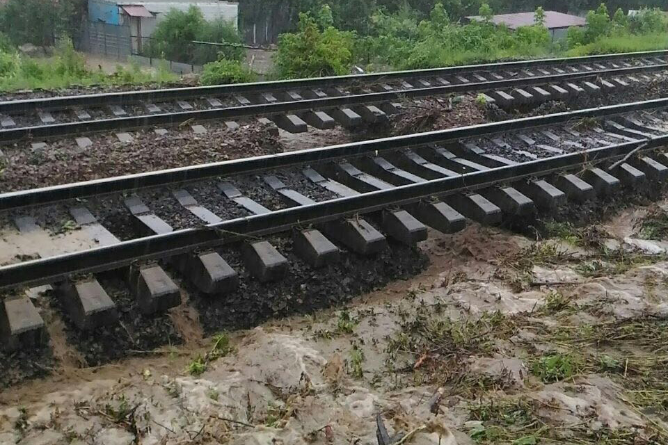 Как сообщает ДВЖД, из-за сильнейших ливней 6 августа в 23:45 по московскому времени размыло верхнее строение пути на перегонах Баневурово — Барановский и Раздольное — Кипарисово на участке между Уссурийском и Владивостоком, а также на перегоне Оленевод — Веневитино участка Барановский — Хасан. Движение по дороге приостановлено.