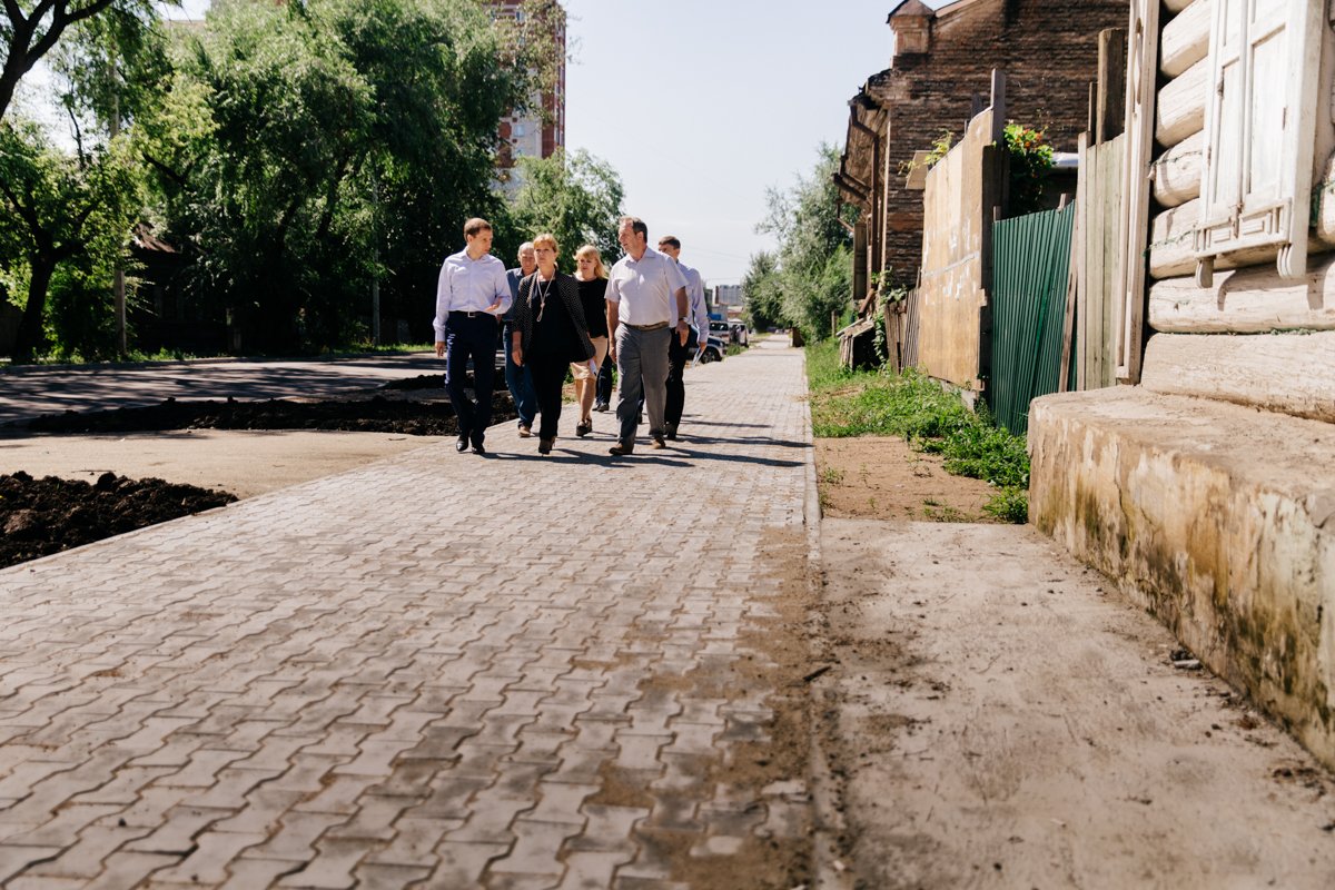Удобный тротуар протянулся сейчас от улицы Ленина до Горького. Исключения составляют несколько участков, где идет строительство домов. Укладывать плитку там сейчас невозможно, так как на стройку заезжает техника, объяснили губернатору специалисты. Но после сдачи домов строительные компании самостоятельно обустроят тротуары возле своих домов.