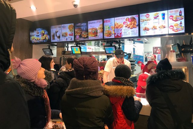 Открытие первого ресторана полковника Сандерса планировалось еще в конце декабря, затем дата передвигалась на новогодние каникулы, после — на первые дни новой рабочей недели. Задержка, как объяснили сотрудники администрации торгового центра, была связана с тем, что для ресторана не успело прийти кухонное оборудование.