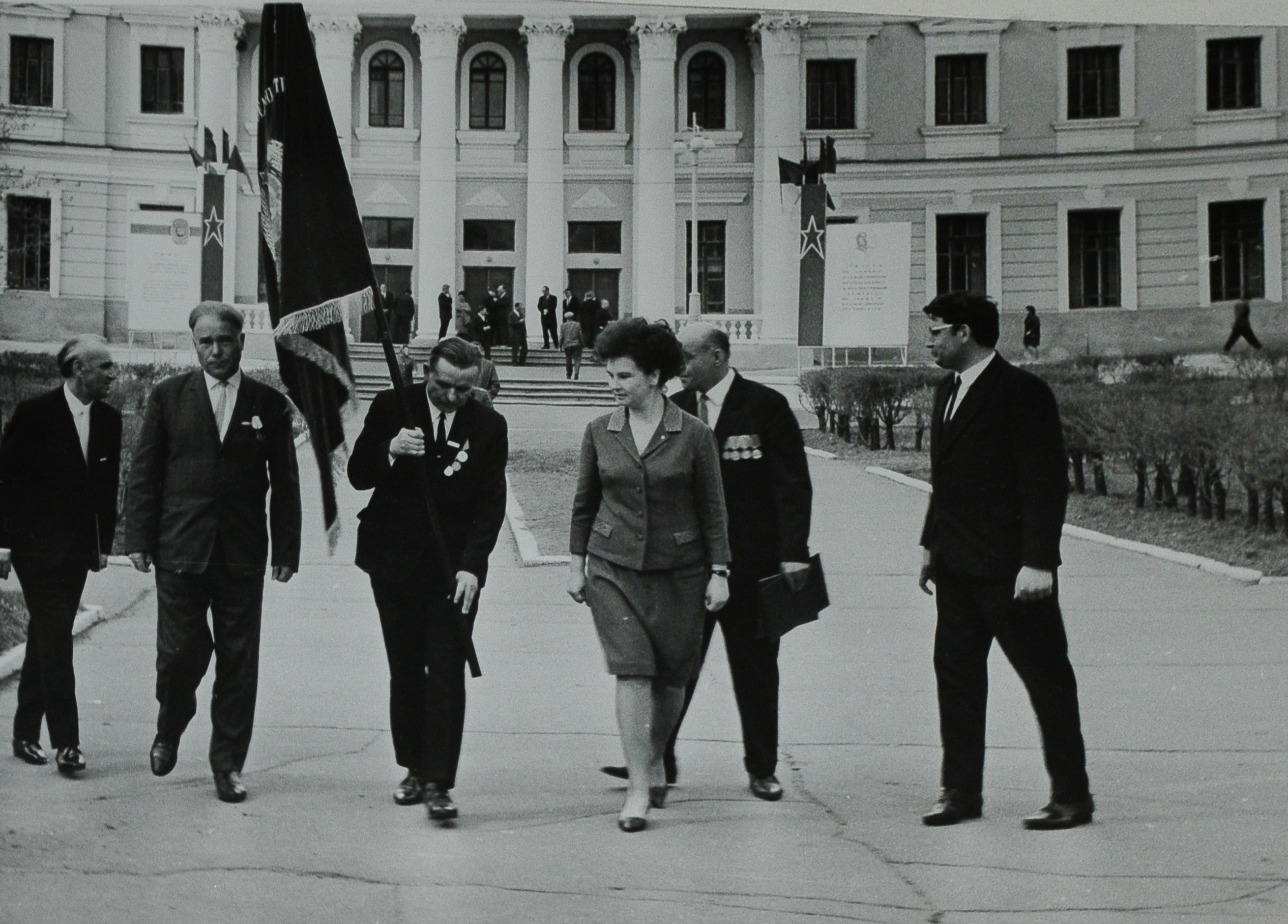 1968. В год своего 50-летия газета, возглавляемая редактором Павлом Ухановым, получила орден Трудового Красного Знамени. На фото сотрудники возвращаются с торжественного мероприятия, гордо неся в руках знамя редакции. Оно, к слову, до сих пор стоит в кабинете директора.
