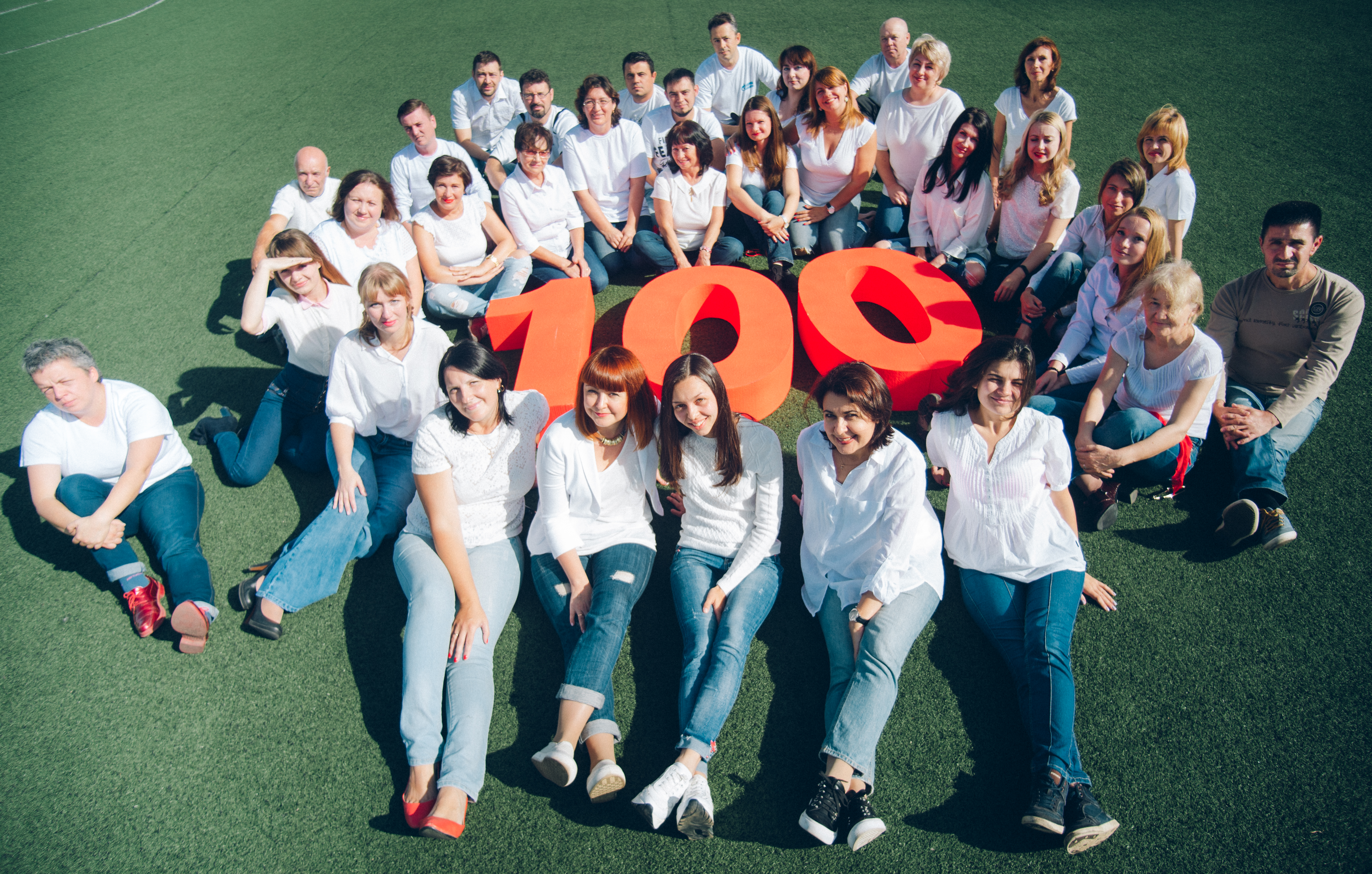 2018. Вековой юбилей — 100 лет. Большая фотосессия на стадионе «Амур». Наш коллектив, преимущественно женский, с 2008 года и по сей день возглавляет Елена Павлова. Елена Владимировна — первая женщина, вставшая у руля лучшей газеты Амурской области!