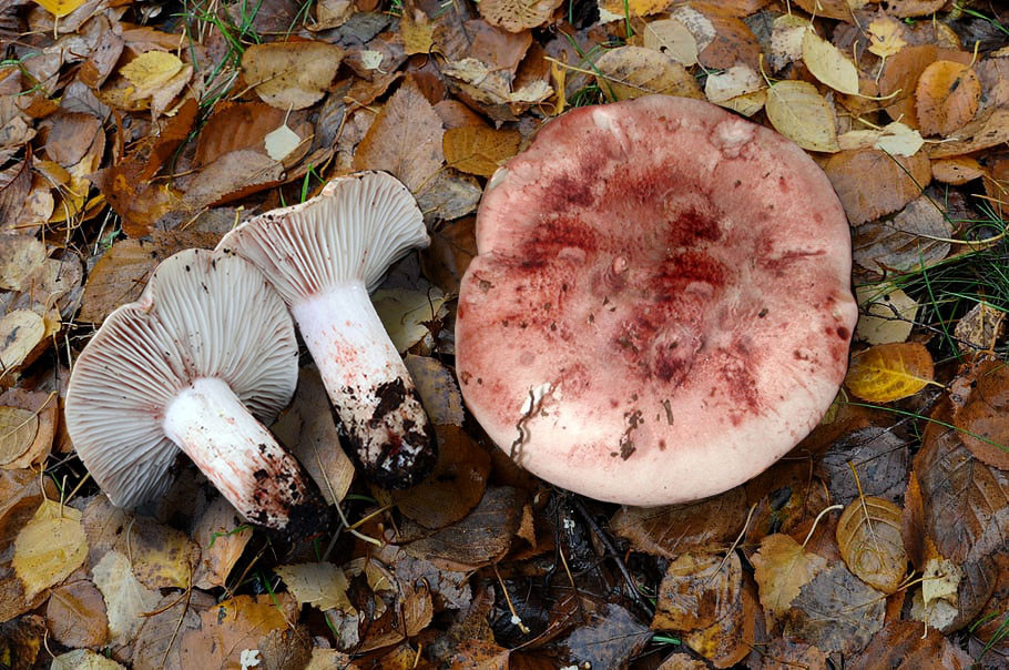 Похожий на сыроежку, но гораздо более мясистый гриб, идеально подходящий для маринования. «Очень вкусные, я пробовала», — советует миколог. Водятся в дубняках и смешанных лесах, появляются ближе к осени. Цвет шляпки — от темно-розового до фиолетового, и в центре темнее, а белая ножка усеяна частыми красными пятнами. Сначала пластинки белые, постепенно обретают фиолетовый оттенок.