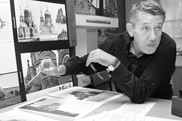 — Сегодня он в хорошем состоянии, — Валерий Сикерин показывает фотографии со знакомыми очертаниями. — Вот фрагменты фасадов. Реставраторы обновили кирпичную кладку, вернули изразцовые вставки, мозаичные украшения, шатры — это все новое. Сейчас им осталось воссоздать главный купол.