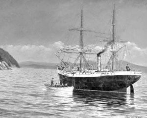 7 октября 1852 года из Кронштадта в кругосветное плавание вышел парусный фрегат «Паллада». Целью его похода было установить дипломатические и торговые отношения с Японией. Вo время плавания русские моряки должны были также описать малоизученные берега Японского и Охотского морей. Из купеческого в военное Для этой цели лучше всего подходило небольшое маневренное судно, имевшее, кроме парусов, паровую машину. Поэтому еще в августе начальник экспедиции вице-адмирал Е. В. Путятин по поручению Морского министерства приобрел в Англии парусно-винтовую шхуну «Fearless» («Бесстрашная»), которая раньше служила купеческим судном, перевозившим фрукты по Средиземному морю. Поскольку шхуна теперь должна была стать военным судном, предназначенным для «рассылок и описи малоизвестных брегов», были выполнены все работы по переустройству. На «Бесстрашную» также установили четыре 8-фунтовых орудия, а для команды закупили нарезные ружья - штуцеры. Командиром шхуны, получившей название «Восток», был назначен лейтенант В. А. Римский-Корсаков (старший брат великого русского композитора Н. А. Римского-Корсакова). Будучи кадетом Морского корпуса, а затем и офицером, Воин Андреевич много плавал на кораблях русского флота по Балтийскому, Северному и Средиземному морям. Кстати, железная парусно-винтовая шхуна «Восток» стала не только одним из первых кораблей подобного рода в русском военном флоте, но и вообще первым таким кораблем в Дальневосточном регионе России. «Шхуна «Восток» есть первое паровое судно, пересекающее экватор, - писал в письме родителям В. А. Римский-Корсаков, - и я хотел уже для совершения этой особенности перейти через экватор под парами, но... за час до перехода машина... попортилась - отказалась служить, так что экватор перейден был по-обыкновенному -под парусами, и только разве выпускаемый мною пар служит указанием, что тут-де проходил пароход». Вообще за время плавания машина часто выходила из строя, и командир шхуны был невысокого мнения о ее качестве: «машина, надо сказать, довольно негодная». Как лебедь на волне 14 марта шхуна благополучно достигла мыса Добрая Надежда и вошла в бухту Симоне (Саймонстаун), где уже находился фрегат «Паллада», прибывший сюда четырьмя днями ранее. Большую часть перехода «Восток» шел под парусами, лишь изредка в зоне штилей используя машину. Индийский океан несколько раз хорошо потрепал шхуну, что дало возможность командиру лишний раз убедиться в ее прекрасных мореходных качествах: «шхуна - бесподобное судно и качается, как лебедь на волне» и далее: «шхуна, почти не качаясь, путешествует по 130 - 140 миль в сутки, т. е. около двухсот верст». Собственно в Гонконге и началась служба шхуны «Восток» в качестве посыльного судна. 16 июня на ее борт перешел вице-адмирал Е. В. Путятин вместе со своим штабом, после чего она вышла в Кантон, который до этого посещали только два русских корабля - шлюпы «Надежда» и «Нева», участники Первой российской кругосветной экспедиции 1803 - 1806 годов. С приходом в Нагасаки начались переговоры с японцами, которые затянулись надолго. Поэтому 18 августа, по распоряжению начальника экспедиции, «Восток» покинул его для производства гидрографических исследований в Татарском проливе и устье реки Амура, а также осмотра западного побережья о. Сахалин, чтобы выяснить наличие удобных стоянок для кор