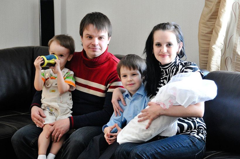 Многодетные родители совсем не похожи на усталых и замученных заботами людей. До рождения третьего ребенка мама семейства преподавала в медицинской академии, сейчас занимается детьми и учится вязать.