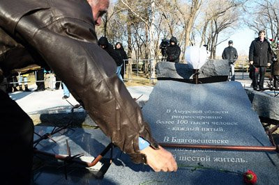 Старая кирпичная кладка, тяжелые гранитные плиты, ряды колючей проволоки и штыки винтовок – так выглядит в Благовещенске памятник жертвам политических репрессий. Его открыли сегодня в Сквере воинов-интернационалистов.